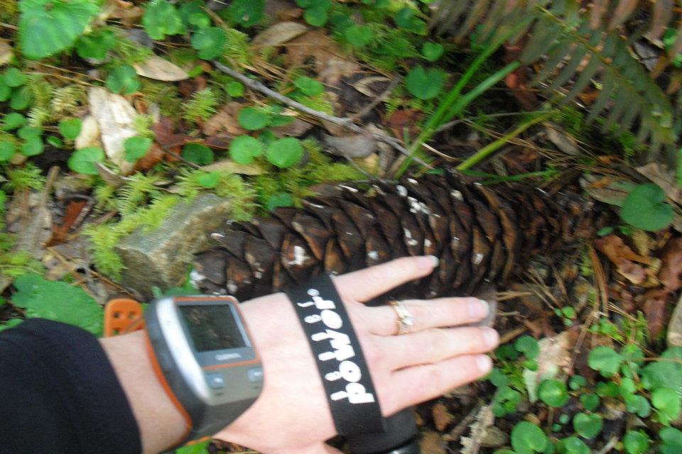 Right in front of this log, was a tree stump, good for sitting. The arrow was pointing in the direction that I needed to go
